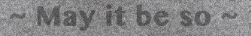 May it be so …