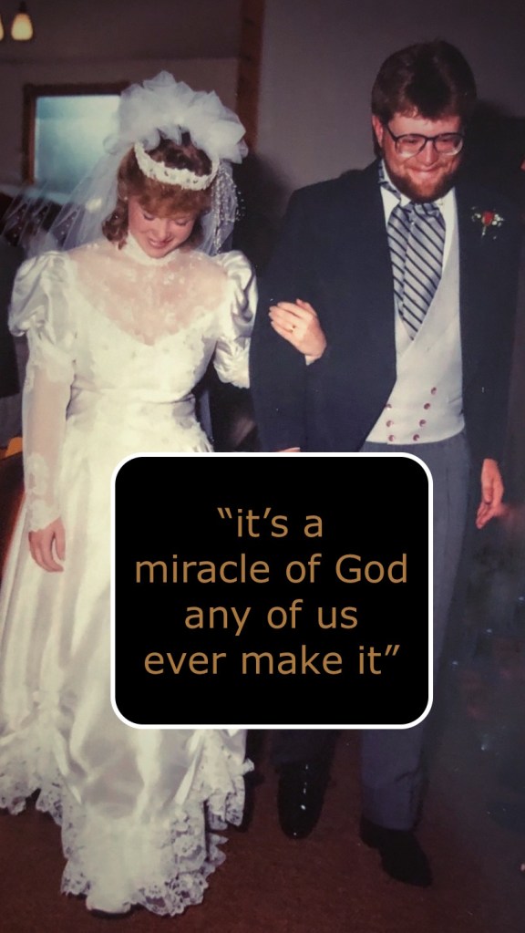 “Just gonna tell y’all something. By the time you’ve been married over 40 years, you’ve been married to about four different people. So have they. It’s a miracle of God any of us ever make it.”