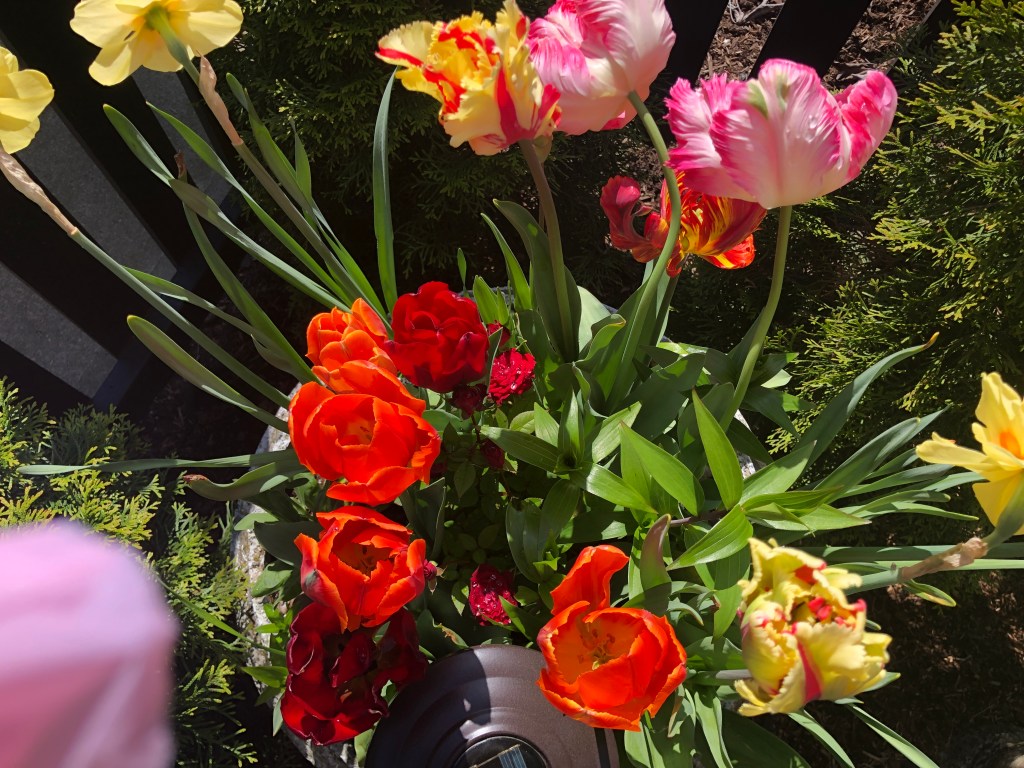 “See how the flowers (the lilies, the tulips, the daffodils) of the field grow. They do not labor or spin. Yet I tell you that not even Solomon in all his splendor was dressed like one of these. If that is how God clothes the grass of the field, which is here today and tomorrow is thrown into the fire, will he not much more clothe you—you of little faith? So do not worry, saying, ‘What shall we eat?’ or ‘What shall we drink?’ or ‘What shall we wear?’ For the pagans run after all these things, and your heavenly Father knows that you need them. But seek first his kingdom and his righteousness, and all these things will be given to you as well. Therefore do not worry about tomorrow, for tomorrow will worry about itself. Each day has enough trouble of its own.” Matthew 6:28-34