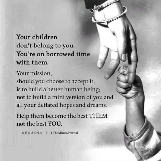 I don’t want you three to be mirror images of me … not in how I look, how I live, how I think. I want each of you to be a better human, a better soul than me. I want you to make your choices, willing to live with the good, bad and ugly that come from them.