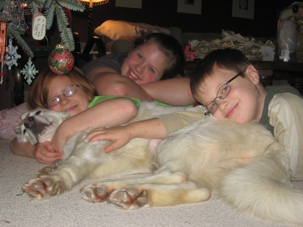 Within a week, my son and I went to fetch her. As I filled out form, after form, after form, after form … get the idea? There were ALOT of forms (I am convinced there were more, than if we had wanted to adopt a human child from a third world country). Anyway, as I was writing my name in triplicate, Shiloh sat at Ben’s feet, and did not move. This was her first family/pack imprinting.