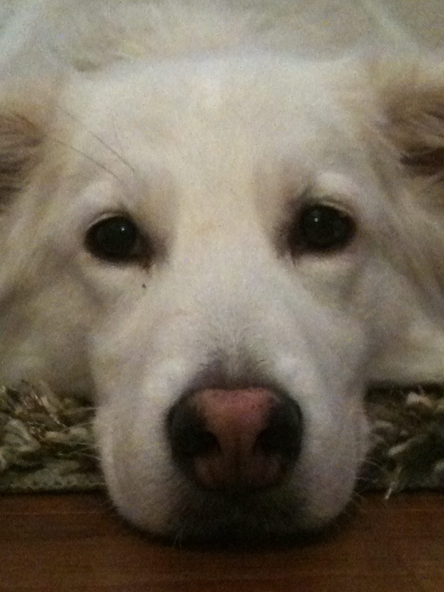 They indicated that she, was about a year and a half. Found in a snowstorm, on the city streets. She was a beaut., with a look somewhere between a white shepherd, lab, and collie. And they said she was gentle. So, I emailed my interest.