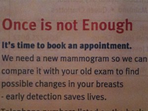 I have to say that the line, “early detection saves lives” is the main motivator for me to make that important appointment.