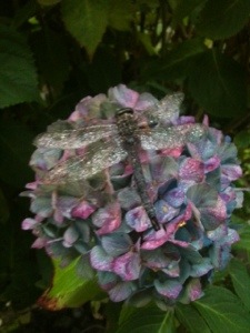 One day last summer I captured, in the picture above, a dragonfly on one of my hydrangea flowers. I have to say, it is a great picture, full of color and light and life. It is not everyday that amateurs like me have such an opportunity to take such a beautiful photo (the photographers reading this would undoubtedly not see it as technically beautiful).